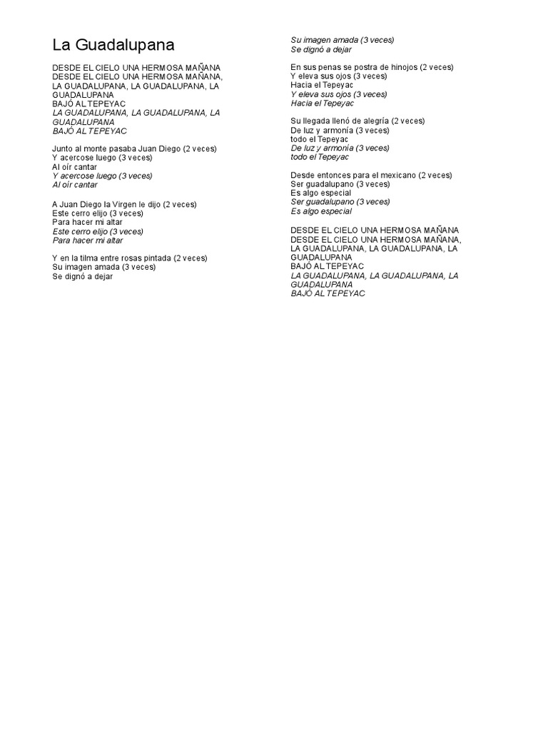 La Guadalupana Cancion Mexicana A La Virgen De Guadalupe ¿necesito la letra de la cancion la guadalupana en nahuatl?