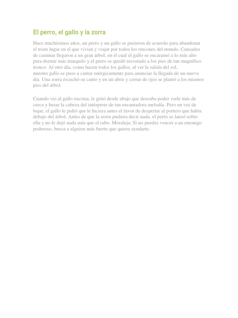 El Perro El Gallo Y La Zorra - Hace muchísimos años, un perro y un gallo se pusieron de acuerdo para abandonar el triste lugar en el que vivían y viajar por todos los rincones del una invitación a la que contestó el gallo, que antes de bajar, hiciera el favor de despertar al portero que había debajo del árbol.