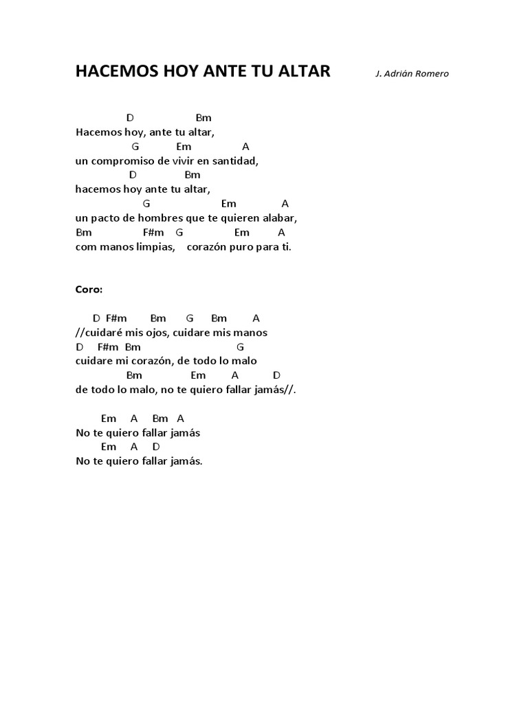 Hacemos Hoy Ante Tu Altar Acordes / Download as pdf, txt or read online from scribd.