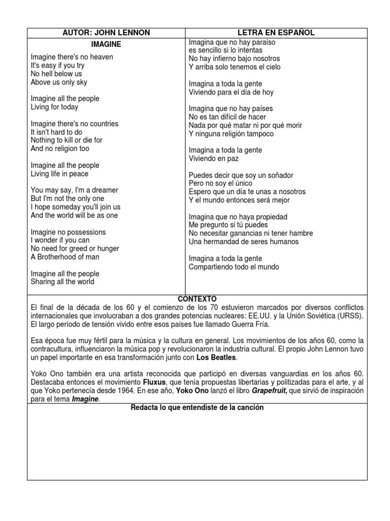 Imagine John Lennon Letra : It's easy if you try.