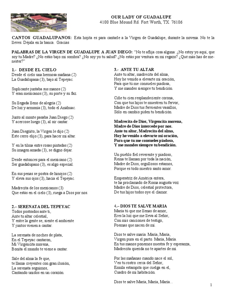 Letra Completa De La Guadalupana / La guadalupana, la guadalupana, la guadalupana bajo al tepeyac (bis).