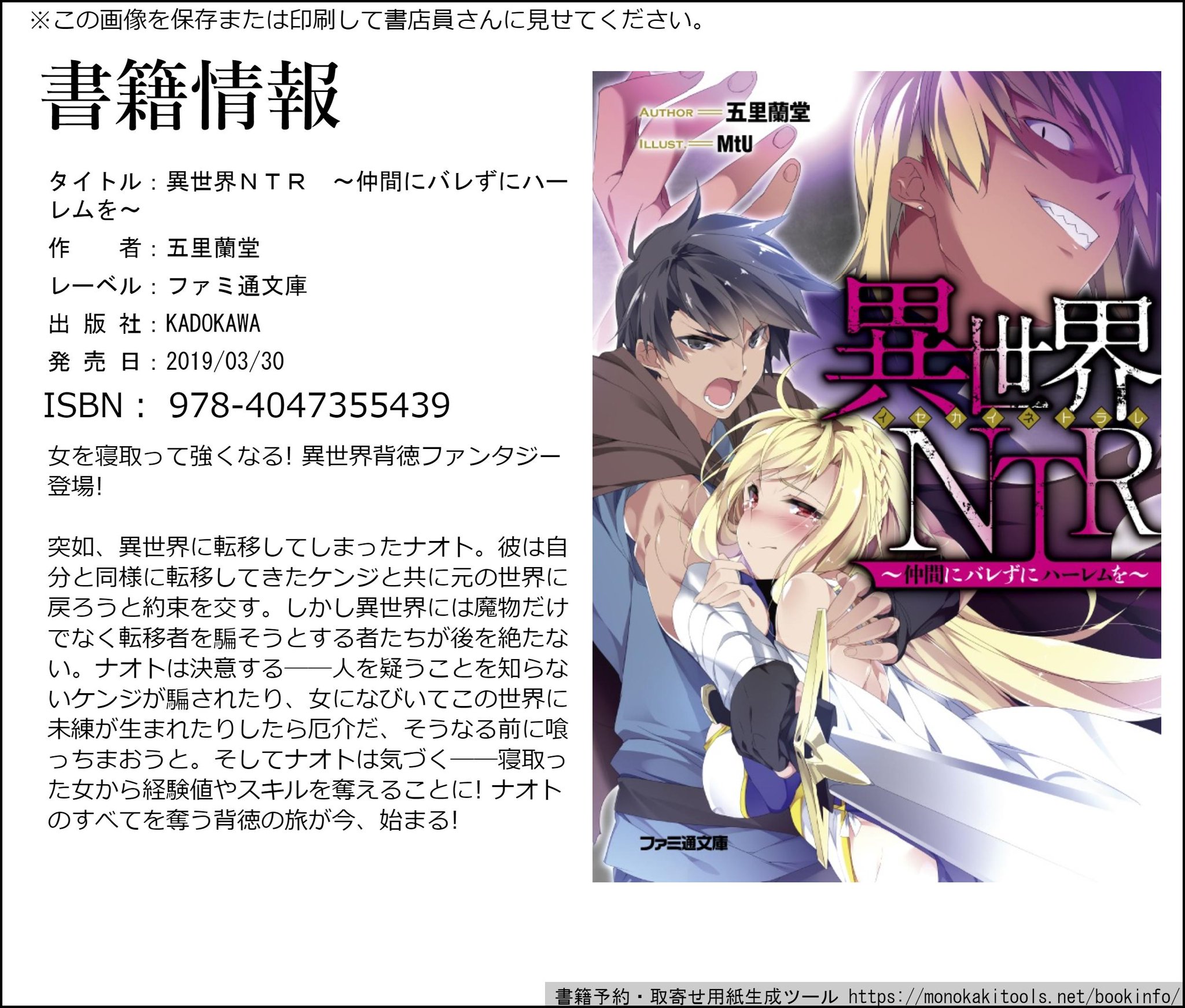 異世界Ntr ~仲間にバレずにハーレムを - Isekai ntr ~nakama ni barezu ni harem wo~ isekai ntr ~shinyuu no onna wo saikyou skill de otosu houhou~ (manga title) ntr in another world ~sullying my best friend's women with the strongest skill~ 異世界ntr~親友のオンナを最強スキルで堕とす方 ~仲間にバレずにハーレムを~.