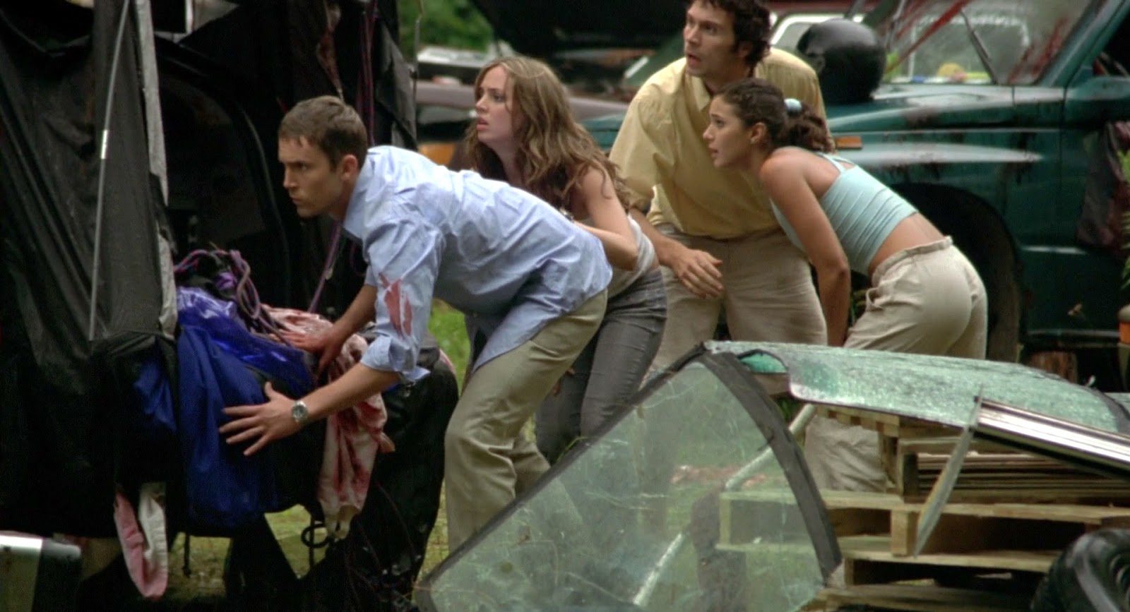Wrong Turn 2003 : Chris crashes into a carload of other young people, and the group of stranded.